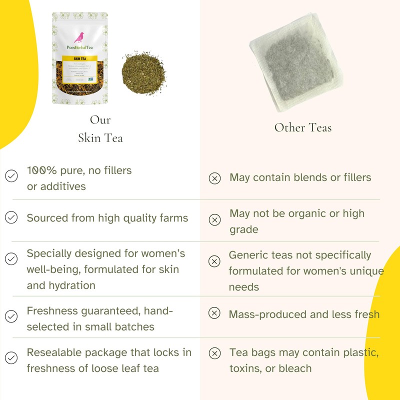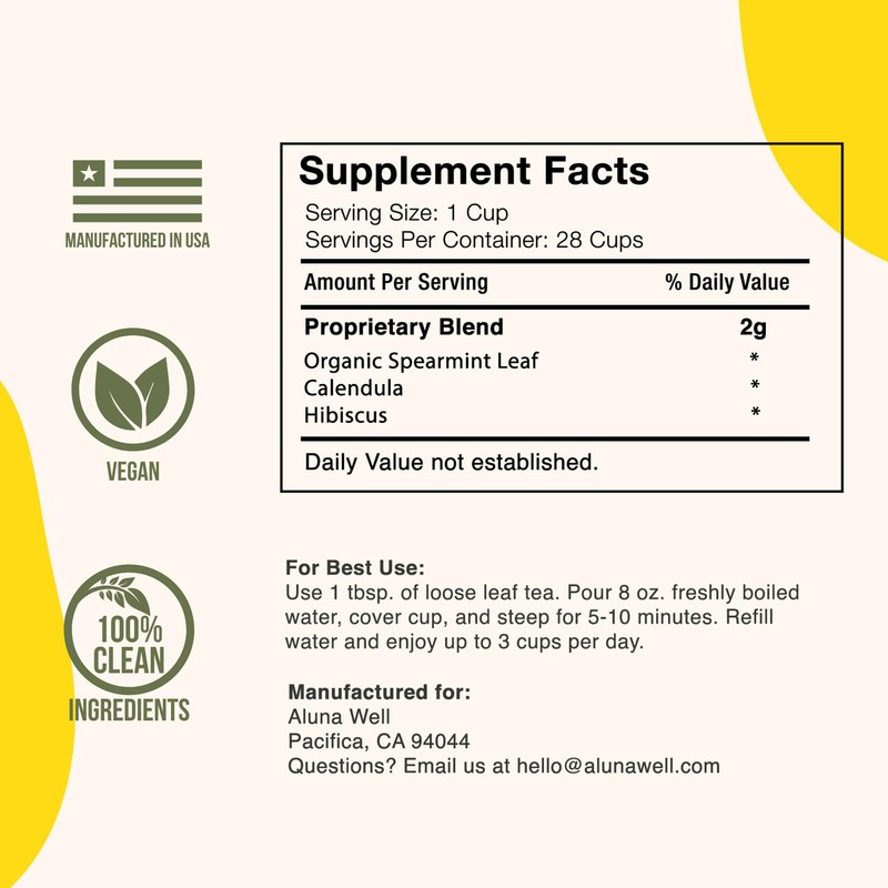 - Nourishing Herbal Blend – Crafted with Hibiscus, Spearmint, and Calendula this herbal tea offers a naturally refreshing and comforting experience for women's skin health through hormonal balance.*