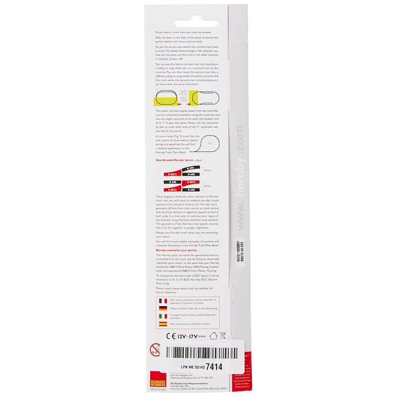 Hornby Hobbies Ltd R8072 00 Gauge Left Hand Point Track, 168 millimeters
