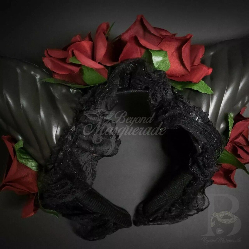 Beautiful horn headband for Halloween, holidays and costume parties. The antlers horns come in black, adorned with black roses. This antler makes an excellent headpiece for costumes, cosplays photo shoots and more.