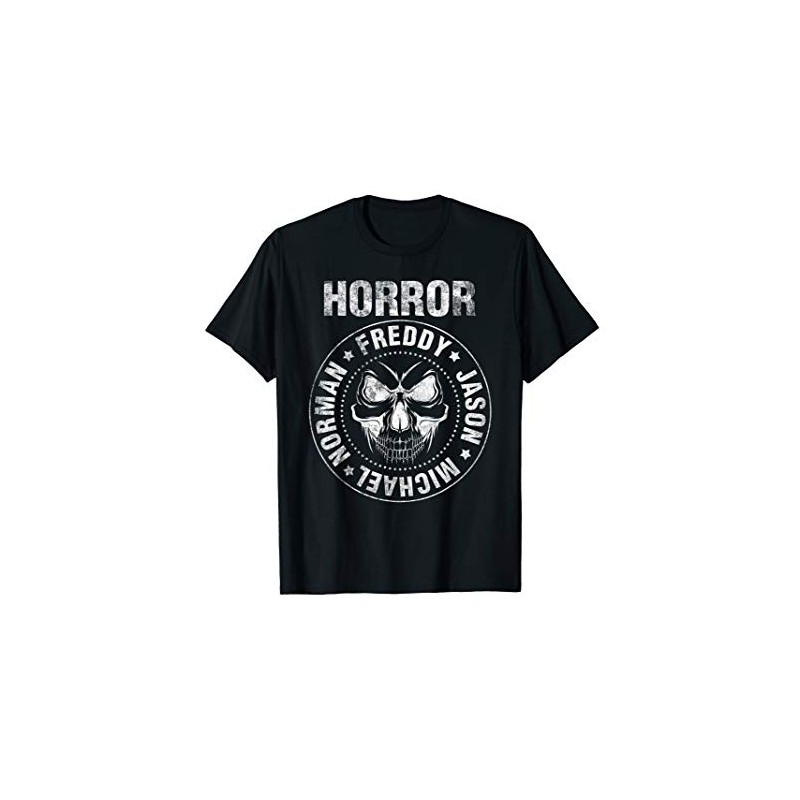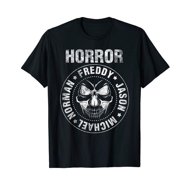 - Fun novelty horror movie icon punk rock style concert design with skull face. Makes a great gift for the horror movie slasher fan. Fan of 60's, 70's, and 80's horror will love this tee. Get one for the horror fan in your life for a birthday or Christmas.