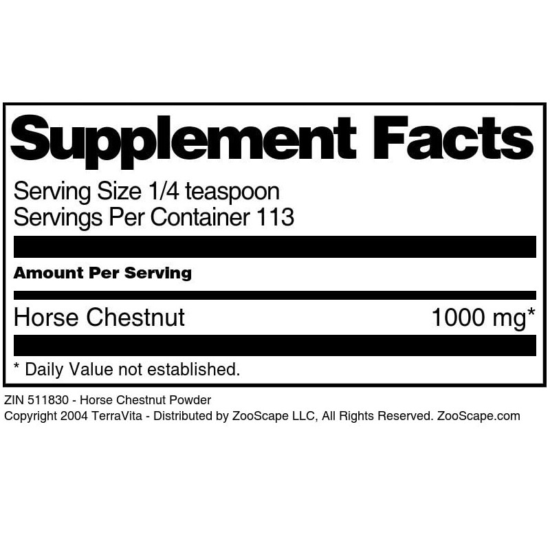 - Horse Chestnut Powder (4 oz, ZIN: 511830): Horse Chestnut is also known by the names Buckeye and Spanish Chestnut. Note: do not confuse Horse Chestnut with its North relative Aesculusglabra californica, California Buckeye. The name Horse Chestnut arises historically from the use of this herb to help support horse's coughs, and being used as animal feed. The Horse Chestnut tree is native to Asia and northern Greece, but it is now cultivated in many areas of Europe and North America. The tree prod