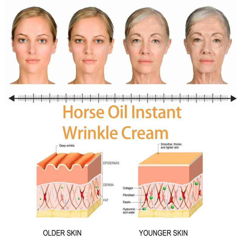 Horse Oil Instant Wrinkle Cream, Anti-Wrinkle Cream, Instant Effect Against Wrinkles, Cream Set Firming Cream, Fade Stains, Fine Lines Tightening, 30 g