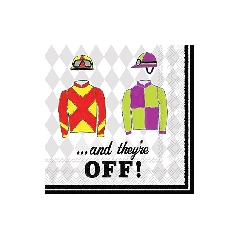 Horse Racing Derby Jockey Party Napkins - 40 Count | 2 Packs of 20CT Beverage Napkins | And They're Off & Jockey Silks Designs