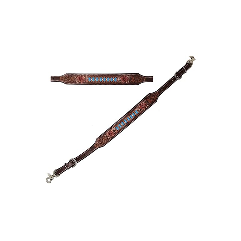 - Features: Made from genuine heavy-duty leather Adjustable length for a secure, custom fit Durable stainless steel or brass hardware Optional decorative tooling, beading, or conchos (if applicable) Helps prevent breast collar from pulling on shoulders