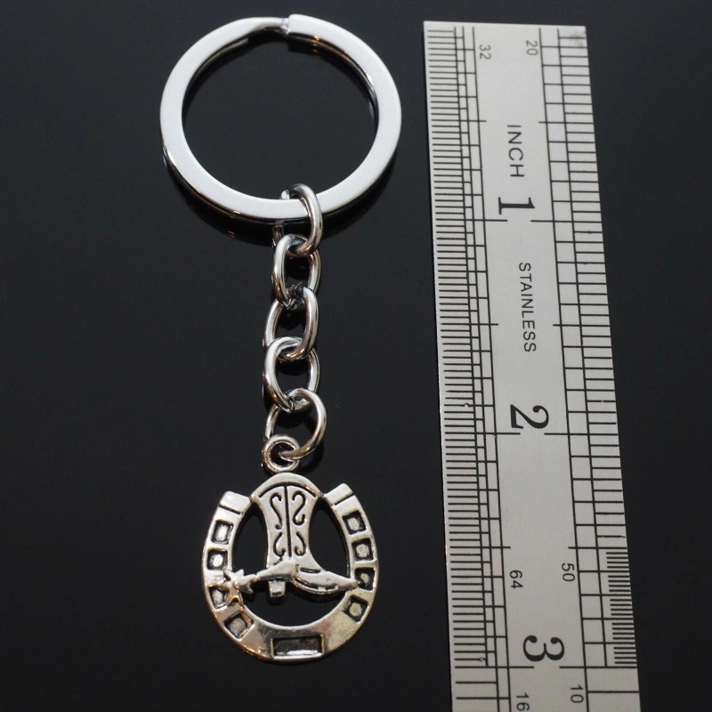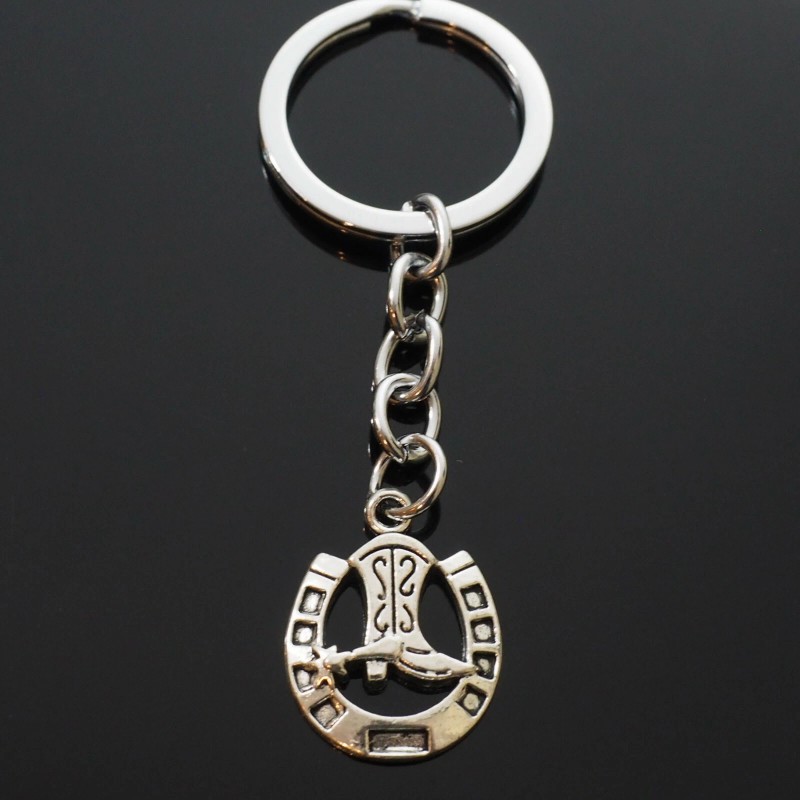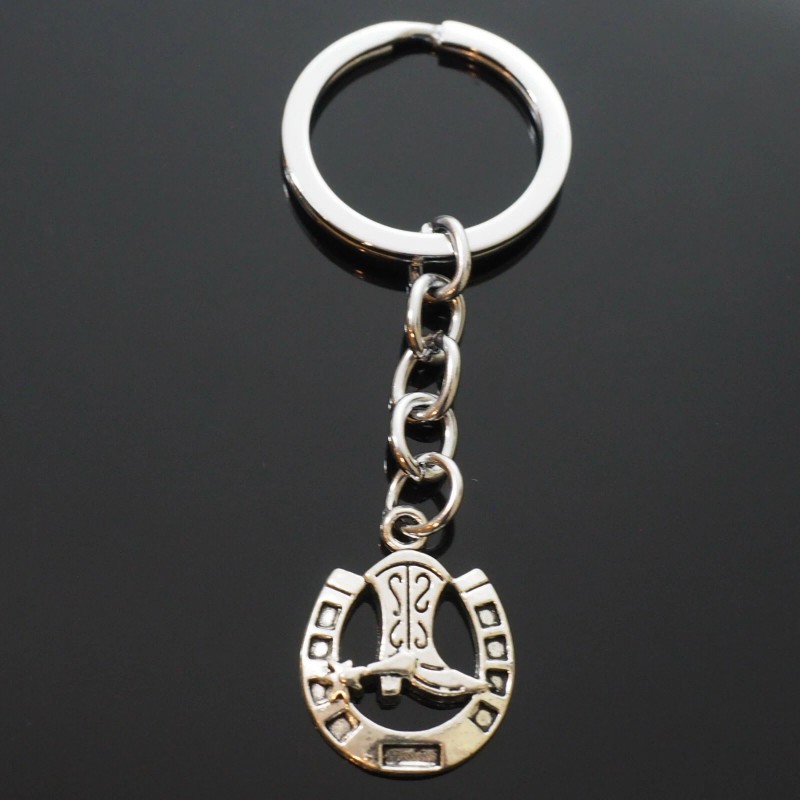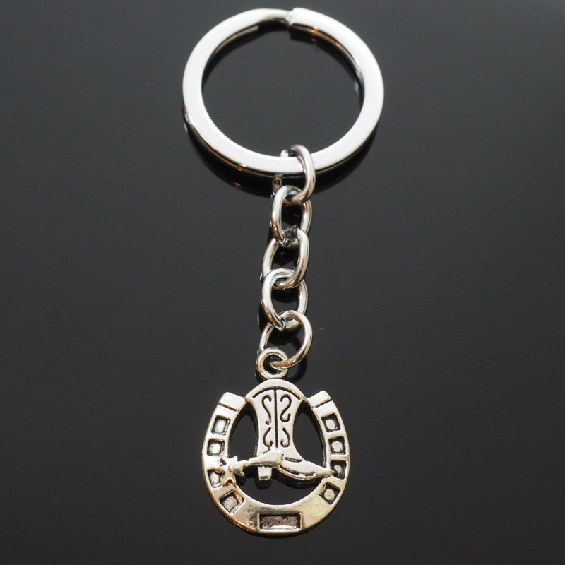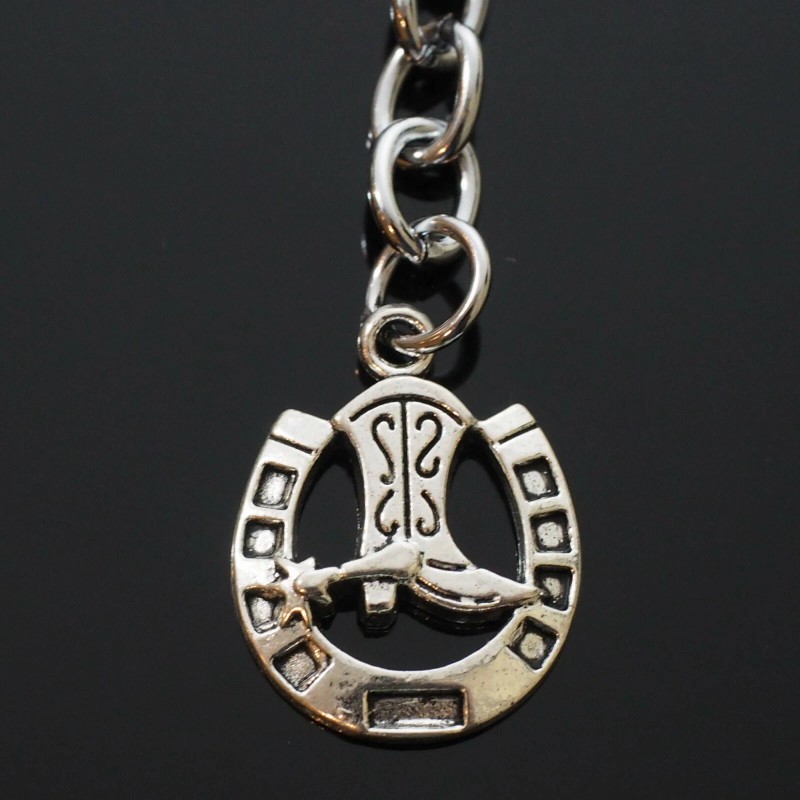 Horseshoe Cowboy Boot Spur Spurs Boots Key Chain Charm Pendant Keychain - Silver