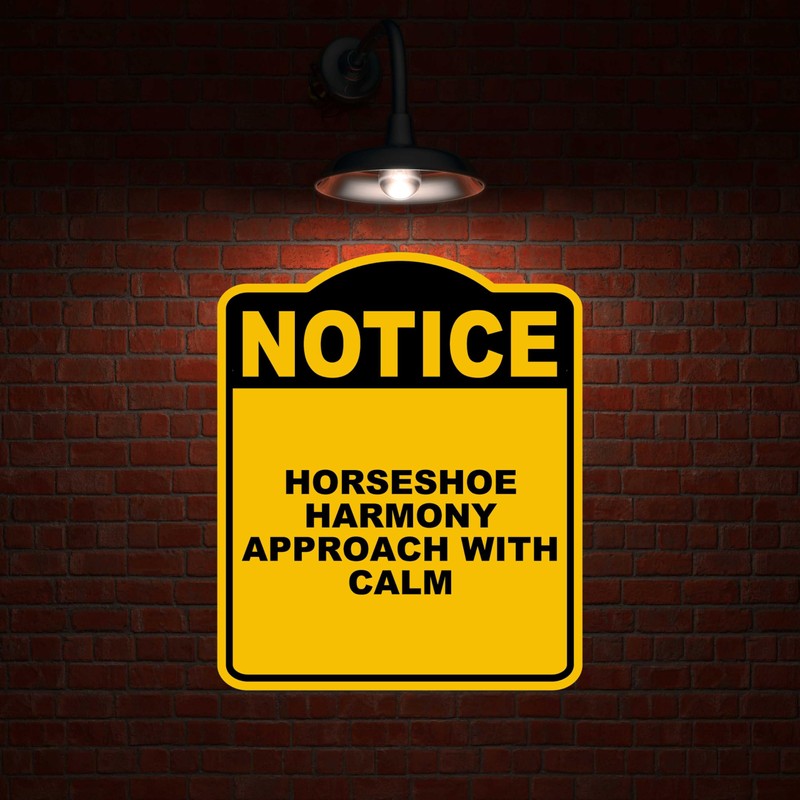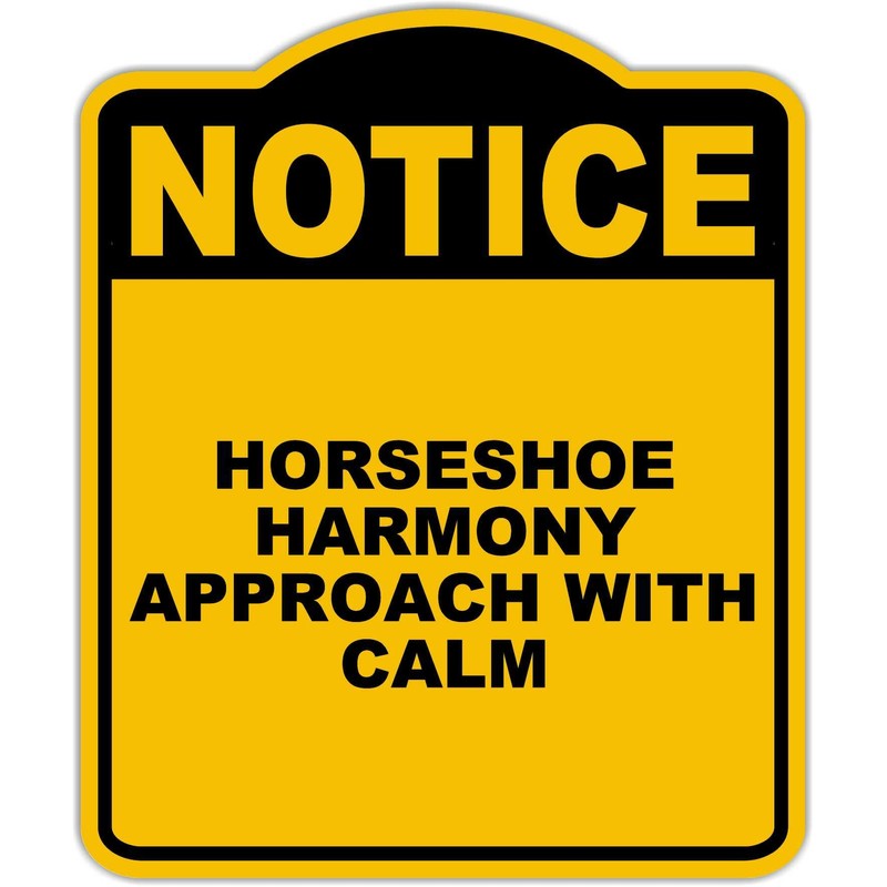HORSESHOE HARMONY APPROACH WITH CALM Notice Yellow Black Aluminum Composite Sign 20 x 24 inches