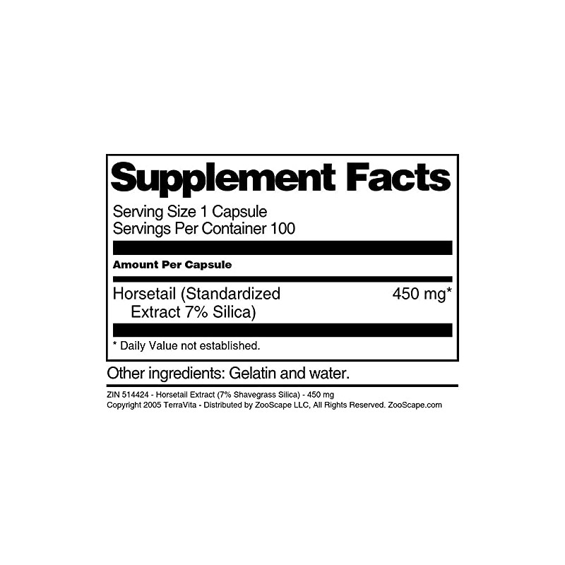 - Horsetail Extract (7% Shavegrass Silica) - 450 mg (100 capsules, ZIN: 514424)