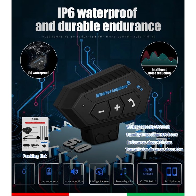 Horudot Bluetooth Motorcycle Helmets Modular Dual Visor Flip-up Full Face DOT Approved Motorbike Street Racing Helmets (Matt Black, Medium)