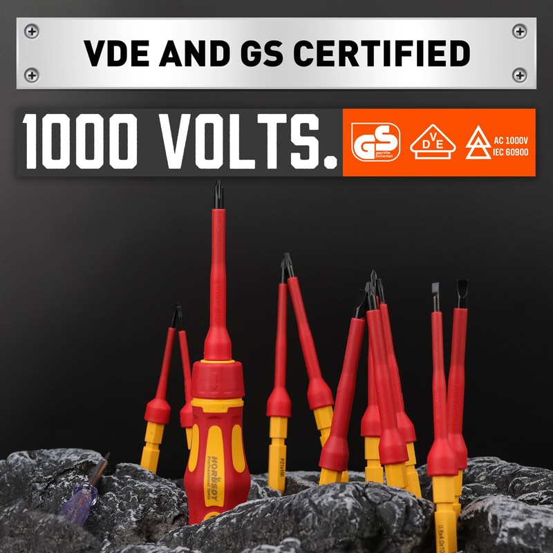 - SAFE CERTIFIED - VDE and GS approved, this 1000V screwdriver set guarantees electricians a safe working environment for electrical tasks.