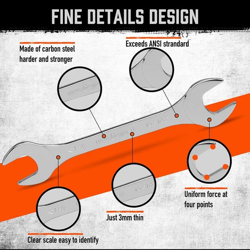 3mm Super-Thin wrench, which is easier to use in a narrow space, enables you to contact fasteners in a tight gap, can perfectly fit all fasteners, and provides you with the maximum torque without slipping.