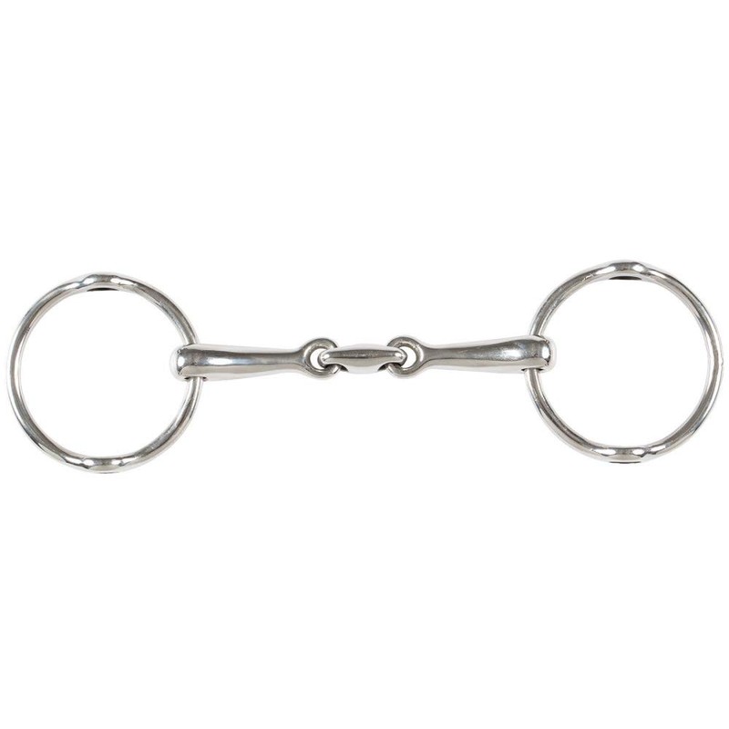 A great option for strong horses, the Horze Lozenge Link Gag Bit provides secure control for experienced riders. This bit exerts pressure on the horse's poll and along the bars of the horse's mouth. The lozenge style mouthpiece limits the nutcracker effect and allows this bit to lay along the horse's tongue. Designed to be used with two sets of reins with one attached to the bit, and the other attached to the cheekpieces. This bit requires a specialized cheekpiece that slides through the rings of the bit. This bit encourages the horse to bring his head up and is commonly used by jumpers and eventers.