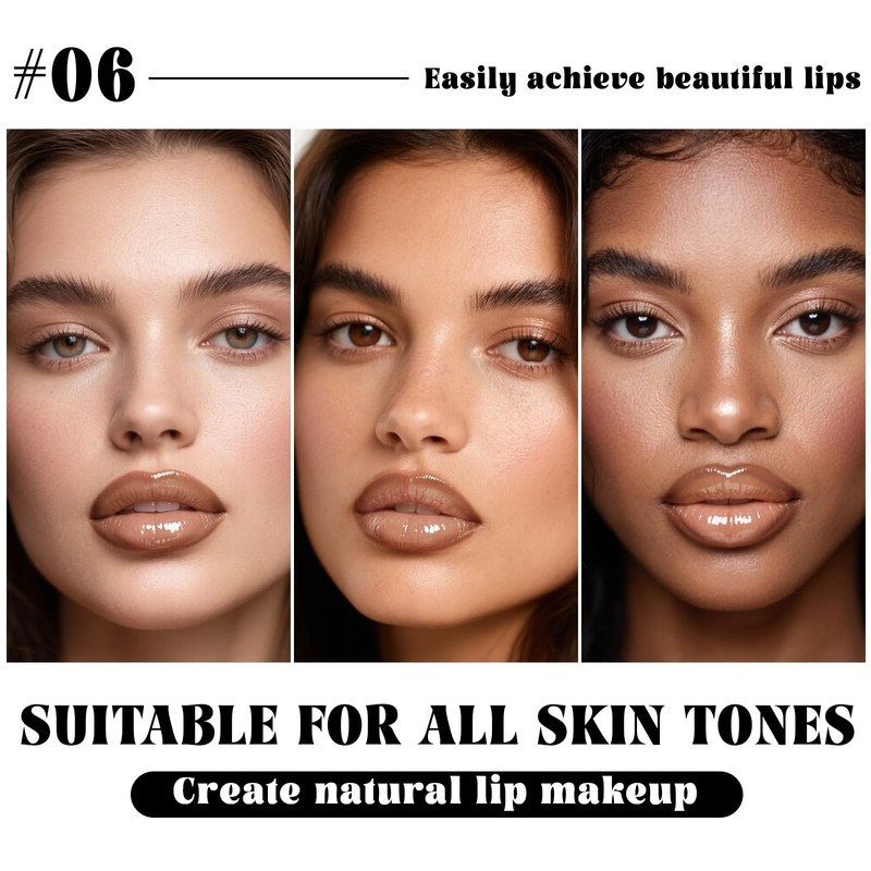 HOSAILY Lip Combo - Dual Ended 2 in 1 Nude Lip Stain Liner & Lip Gloss Kit, Waterproof Long Lasting Liquid Lipstick and Juicy Mirror Lip Glaze Smooth Plumping Nourishing Lip Marker Makeup 06