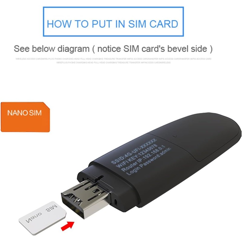 Dieses 4G-USB-Modem enthält keine SIM-Karte. Benutzer müssen eine Nano-SIM-Karte von lokalen Betreibern kaufen, um dieses Gerät zu verwenden.