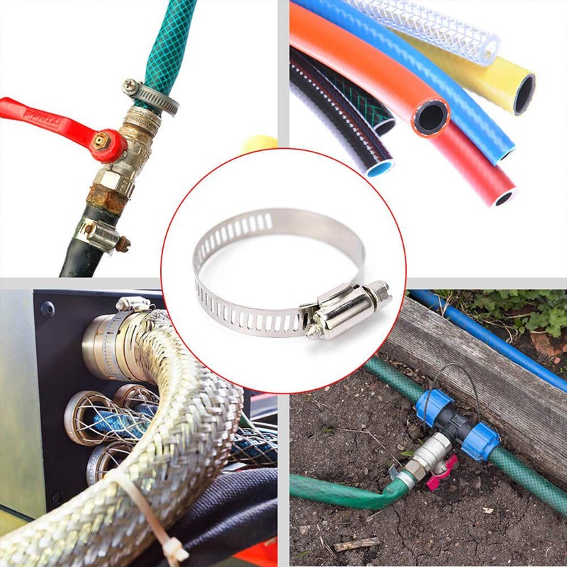 - HIGH QUALITY- The whole hose clamp (including the band, housing and screw) are all made of premium heavy duty stainless steel material. Salt resistant, anti rust, anti-corrosion, waterproof, oil-proof. Clamps are sturdy, strong and reliable