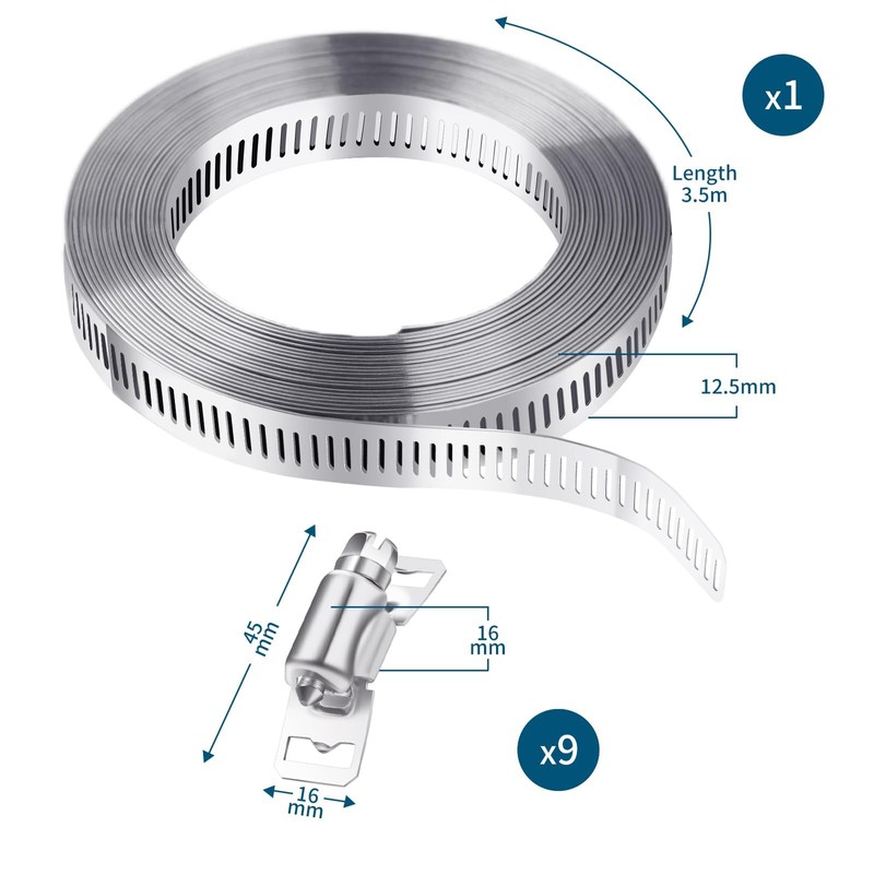 - 🛠【Combination Style】 Hose clamp set includes 1*steel strip length 3.5m*width 12.5mm, pipe clamp thickness 0.6mm, 9*fasteners 16mm*45mm. Very simple to make large jubilee clips, easy to solve your problems and meet your different size requirements!