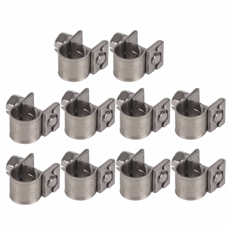 Hose Clamp Set 10-Piece T-Bolt Mini Fuel Line Pipe Stainless Steel Hose Clamp Clamps Rustproof 6 mm-20 mm Optional Size (6-8 mm), #-01