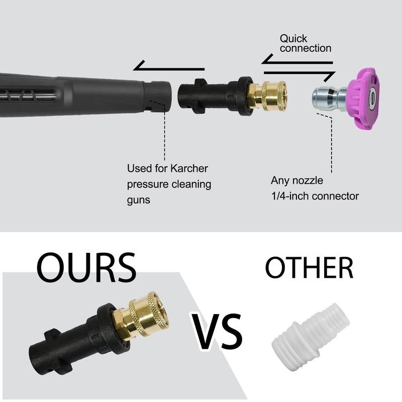 • Wide Compatibility with Karcher K Series: designed to fit k2, k3, k4, k5, k6, and k7, as well as pressure washer guns. please note: this adapter to quick connect is not suitable for models k1700, k1800, k1900, or k2000.