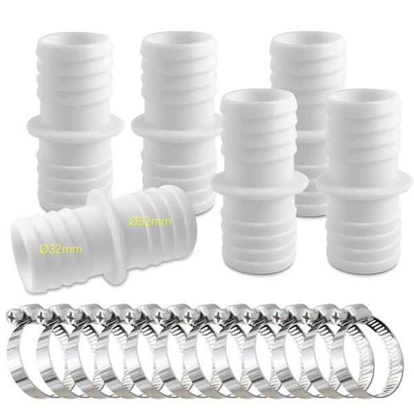 • ♥6 x pool hose connectors for hoses with 32 mm outer diameter + 12 stainless steel hose clamps. This is a very affordable package that can meet your daily needs