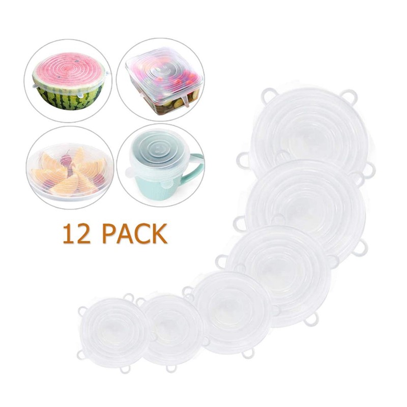 Hoshen 12PCS Stretchable Flexible Silicone Lid, Reusable Food Storage Lid, Suitable for Various Sizes of Bowl and Cup Container Lid
