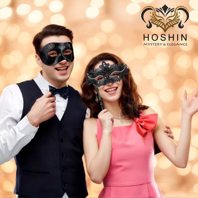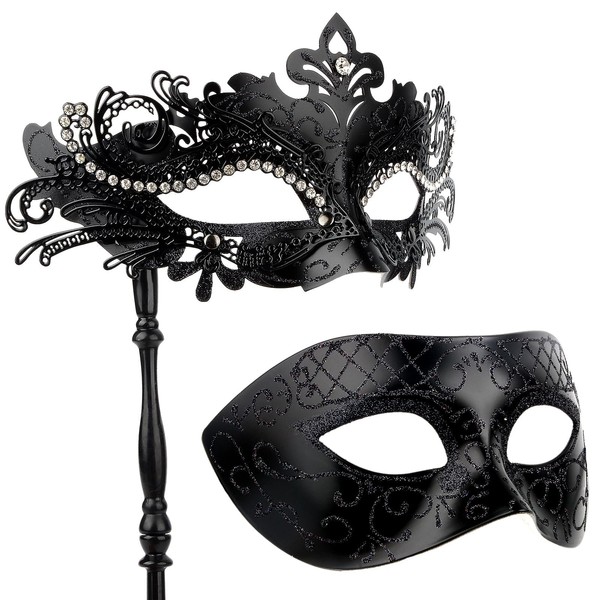 Hoshin Masquerade Mask for Couple, Mardi Gras Deecorations Venetian Masks with Stick for Womens(Black)