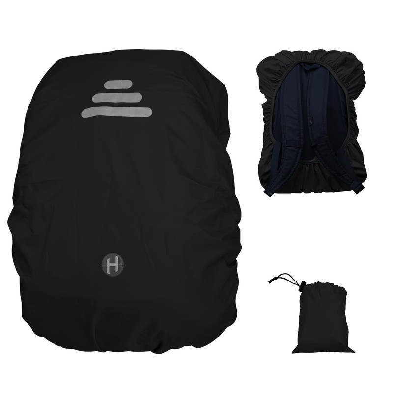 - Hosifiy Waterproof Backpack Cover with Reflective Strips & Non-Slip Cross Buckle Strap for School Bag, Hiking, Camping, Cycling (Black, M/45L)