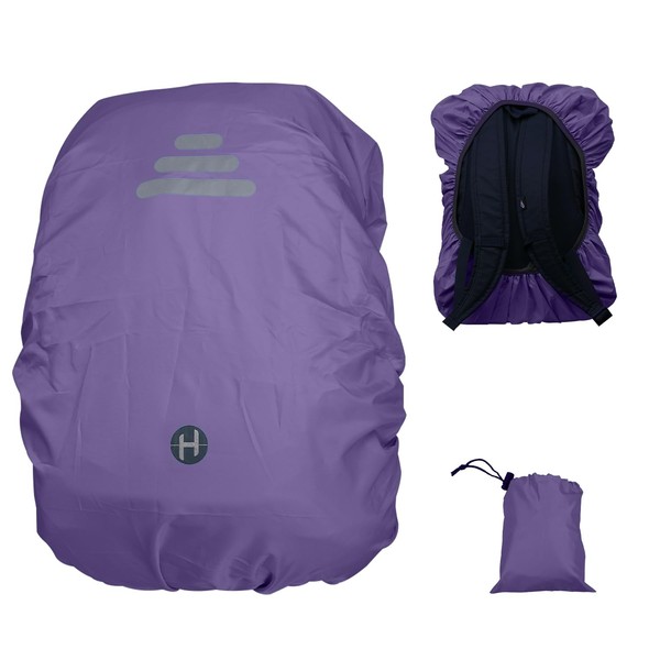 - Hosifiy Waterproof Backpack Cover with Reflective Strips & Non-Slip Cross Buckle Strap for School Bag, Hiking, Camping, Cycling (Purple, XS/25L)