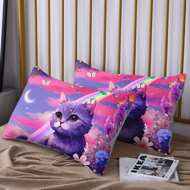 - Design:This purple fitted sheet adorned with playful cat and rainbow flower patterns,Perfect for adding a pop of color to any bedroom,this cat bedding is not only eye-catching but also durable and easy to clean,Whether you're a cat lover or simply looking for a gift,our cat fitted sheet is the perfect choice for you.