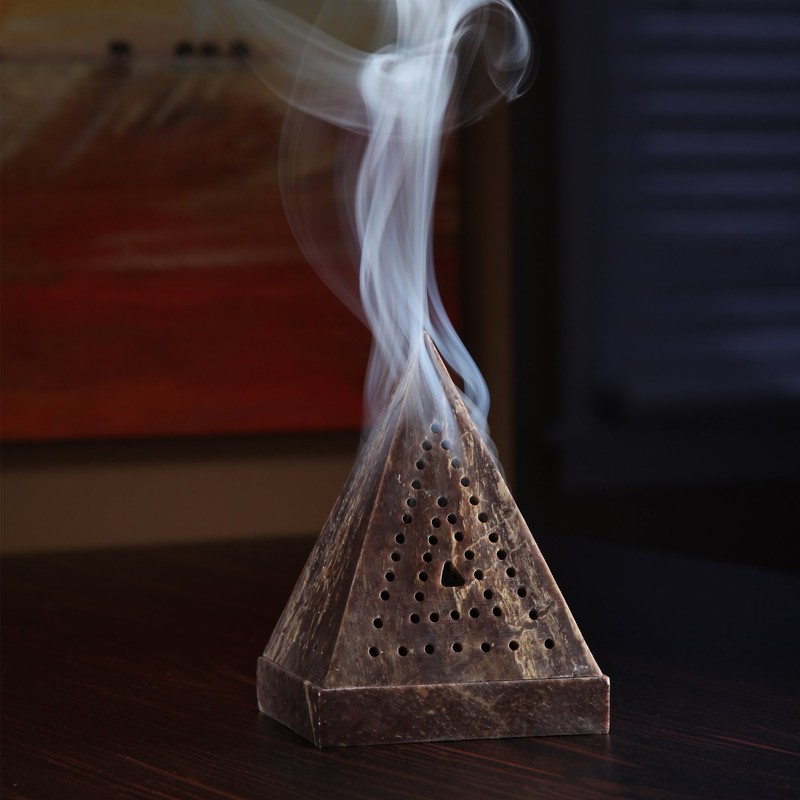 - PRODUCT: Hosley's 5" High Large Soapstone Triangle Pyramid, Incense Cone Holder.
