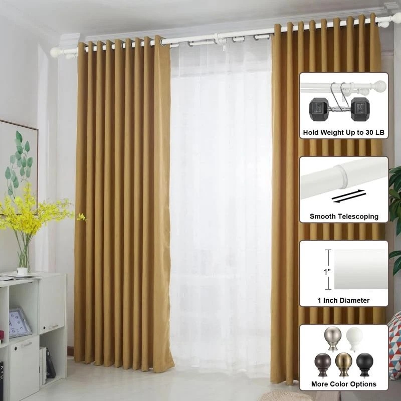 ADJUSTABLE LENGTH: Our double window rod can extend from 72 to 144 inches easily to fit a variety of sized windows and support light to medium weight curtains. Classic double round finials appearance shows the beauty of the decorative design. Ideal for the living room, bedroom, dining room, kitchen, or home office.