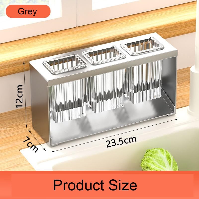 Hosoncovy Countertop Cutlery Drying Holder Cutlery Drainer Tableware Holder Box Tabletop Separated 3 Cups Fork Chopstick Kitchen Storage Cutlery Utensil Organizer (Grey)