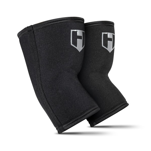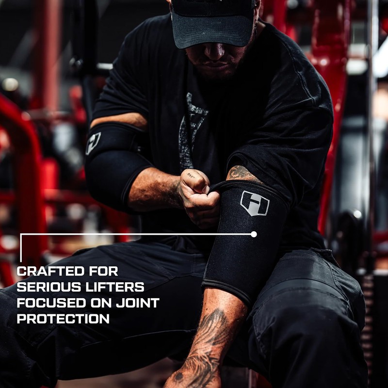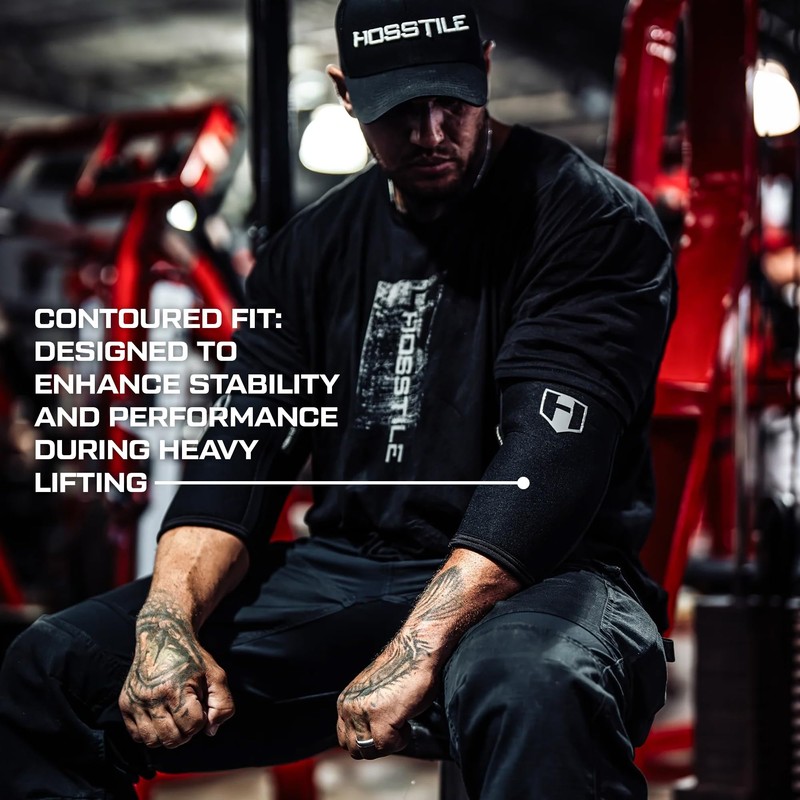 HOSSTILE Neoprene Elbow Sleeves (Pair) – 7mm Competition-Grade, Reinforced Seams, Contoured Fit for Stability & Performance, Joint Protection and Compression for Heavy Lifting (Small)
