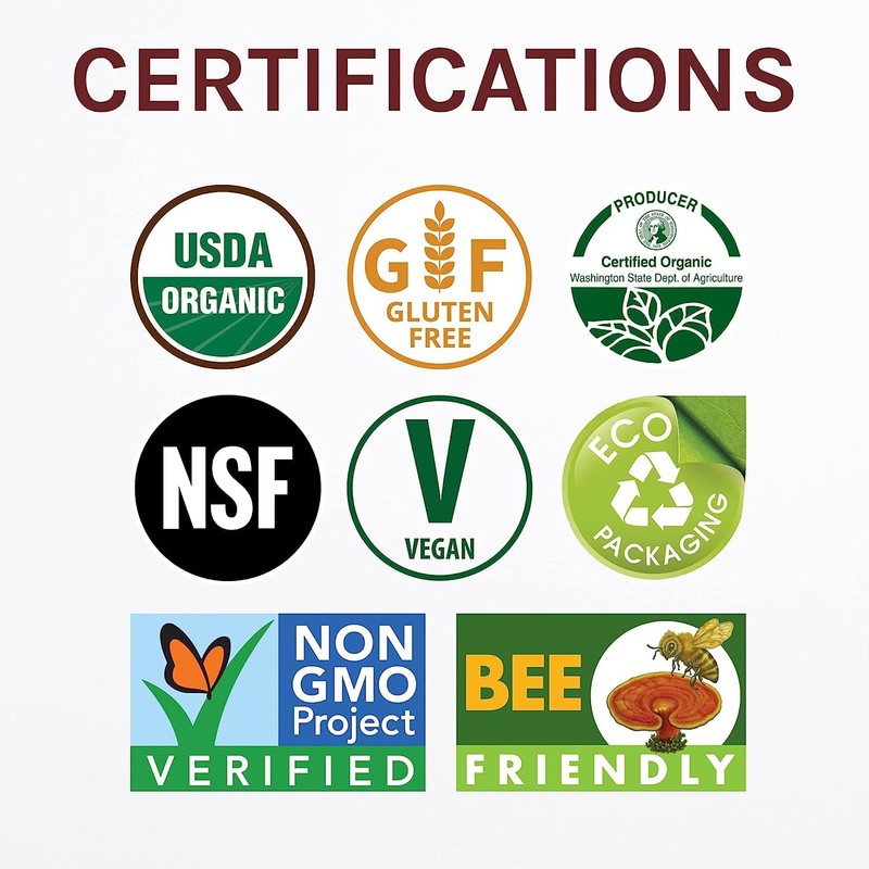 - Powered by Mushroom Mycelium: Our organic mushroom mycelium is grown on organic brown rice substrate; third-party studies show that mushroom mycelium and fermented rice substrate support your health*