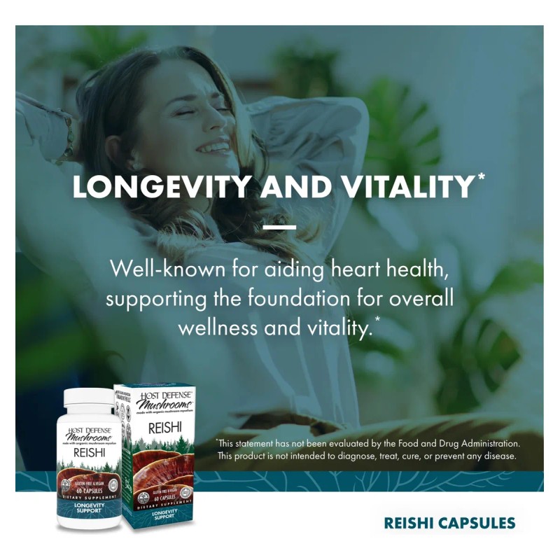 Host Defense Reishi Cápsulas: suplemento natural con extracto de Reishi para potenciar tu energía y fortalecer el sistema inmunológico. Apoyo diario para bienestar integral. 🌿💪