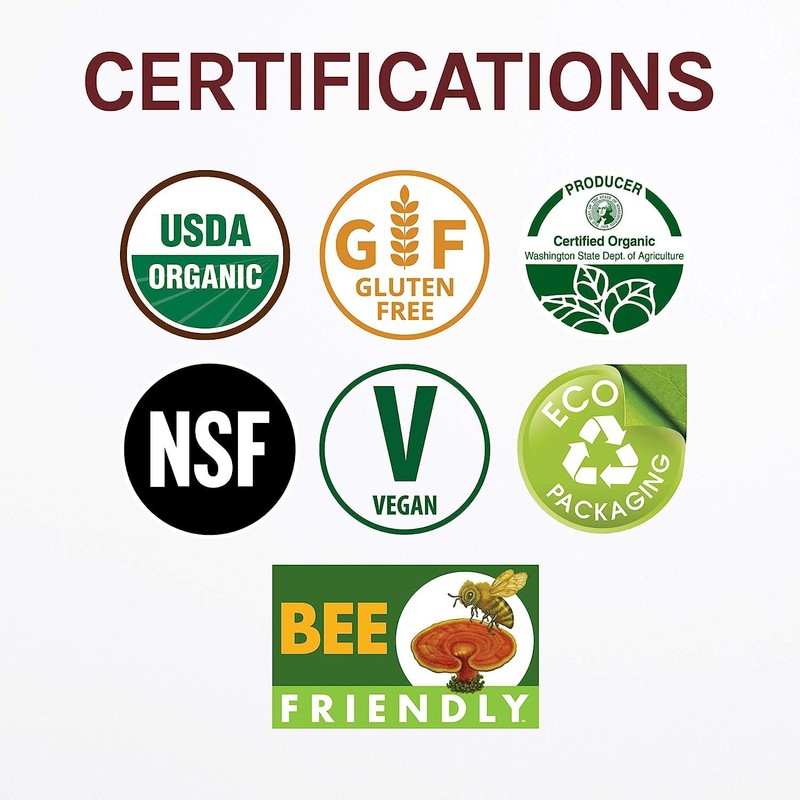 - SAFE, SMART INGREDIENTS: Sustainably cultivated, certified organic and US grown mushrooms from the forest, to our farm, to you