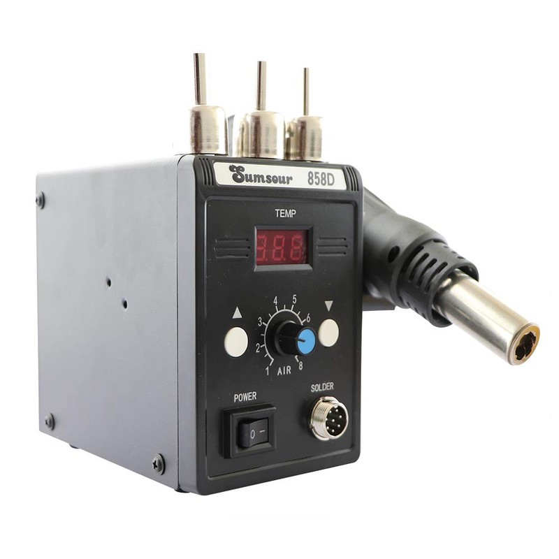 Hot Air Gun 858D 700W 110V BGA Rework Solder Desoldering Heat Gun Station For SMD SMT Welding Soldering Repair Tools (Black 858D SET-1)