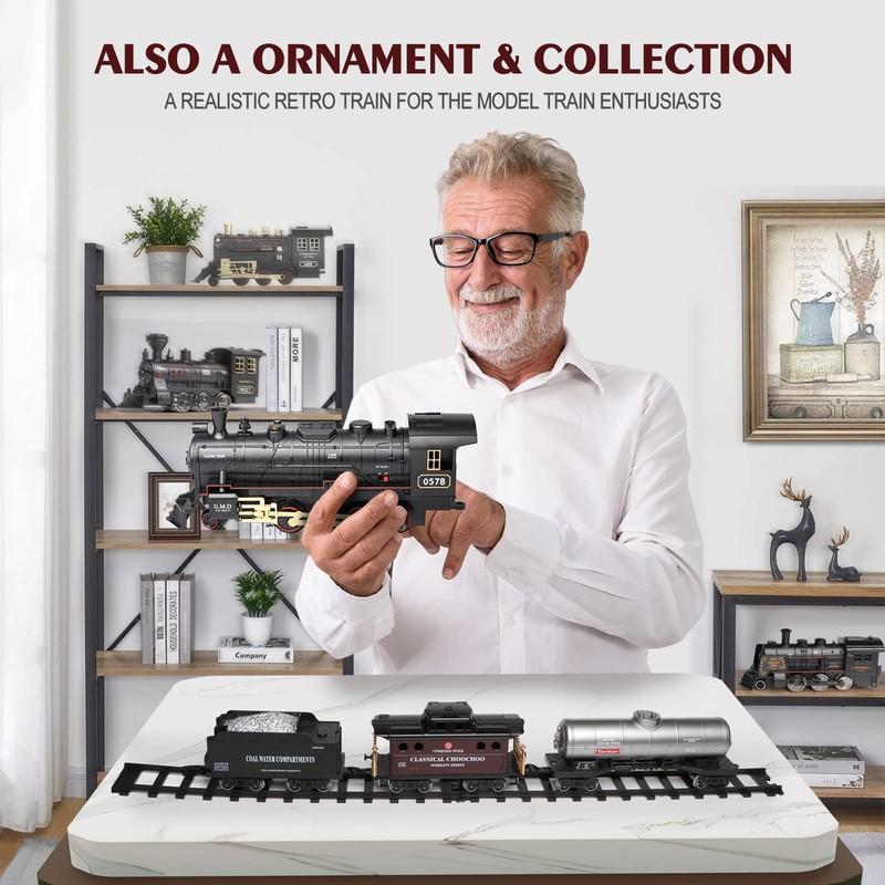 - 🚂IDEAL CHRISTMAS TOYS GIFTS FOR KIDS🎄:For every child, toy trains are fun and educational holiday, birthday and Christmas gifts. The model train bring children back to the age of industrialization without electronic products, and children can experience the tremendous changes that industry and technology have brought to the world. This train model is suitable for 3,4,5,6,7,8+ years old boys/girls.