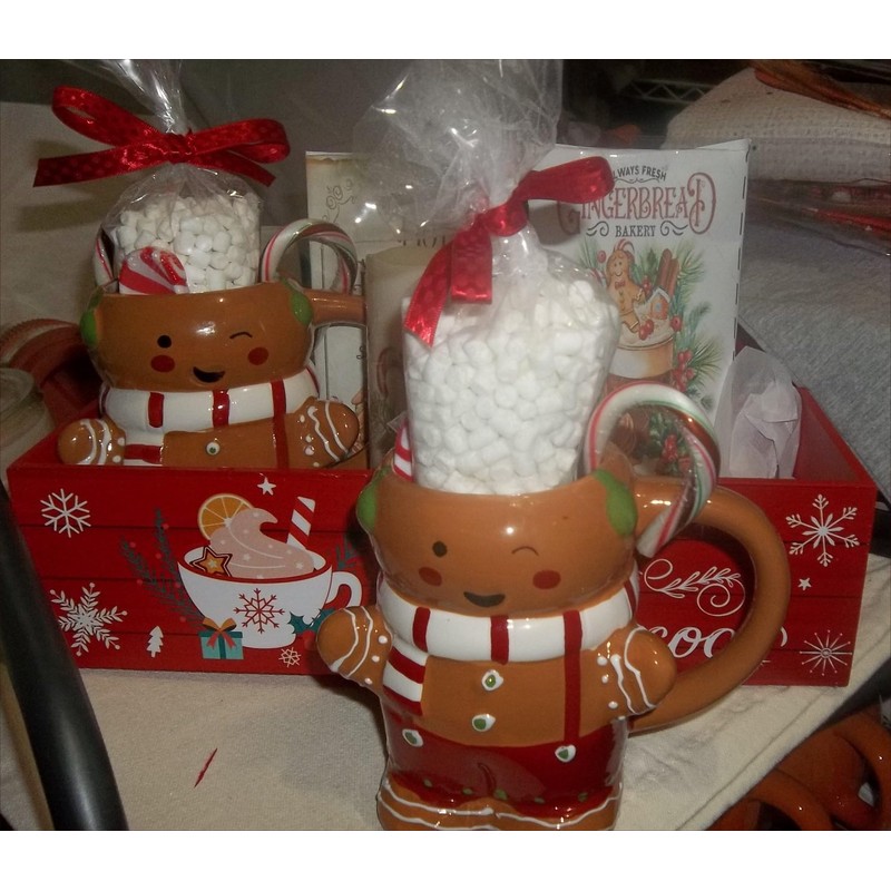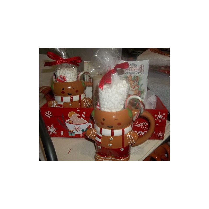Hot Cocoa Box Gift Basket 2 Mugs Peppermint Spoon Marshmallows Candy Cane Candle