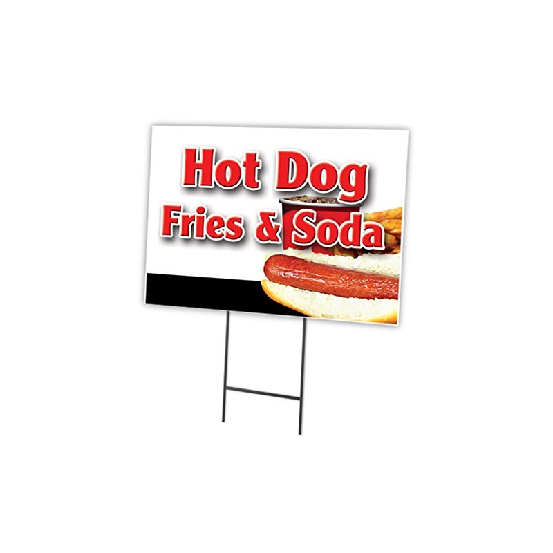 HOT Dogs Fries & SODA 18"x24" Yard Sign & Stake hot Dog cart | Advertise Your Business | Stake Included Double Sided Image | Made in The USA