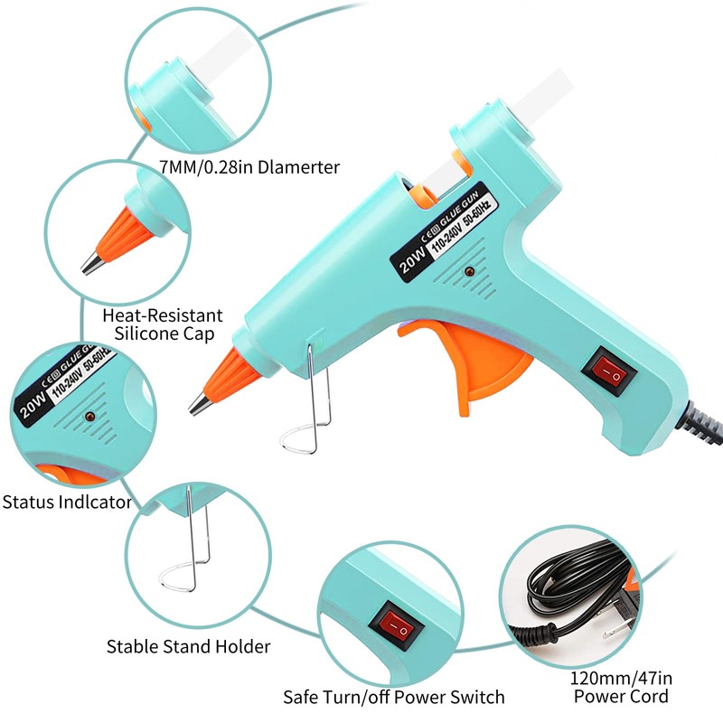 • 【Wide Application】: Our glue gun kit is suitable for different materials, such as metal, plastic, paper, glass, ceramics and others, and peferct for office, school and home using, good choice for DIY craft project and repairs