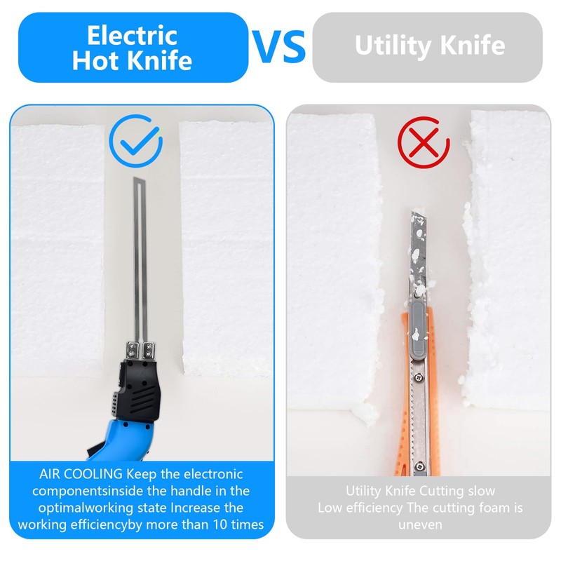 - 【Air Cooling & Efficiency 】The hot knife foam cutter is 250W,Advanced air-cooling technology compensates excessive heat by alternating hot and cold airstream,It can ensure that it does not stop working due to excessive temperature, and keep electronic components in good condition, as well as improving work efficiency