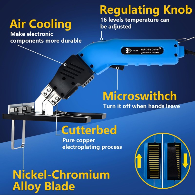 - 【Air Cooling & Efficiency 】The hot knife foam cutter is 250W,Advanced air-cooling technology compensates excessive heat by alternating hot and cold airstream,It can ensure that it does not stop working due to excessive temperature, and keep electronic components in good condition, as well as improving work efficiency