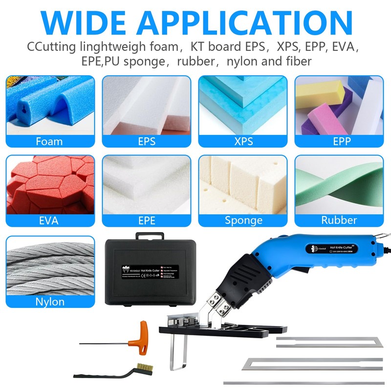 - 【Wide Application Range】 The foam cutter with slotting/groove 250W foam cutter is commonly used and can cut various materials, can cut canvas, synthetic fiber, cloth, rope and rope, lightweight foam, KT board pink foam, polyurethane, polyethylene, expanded poly Styrene (EPS) and extruded polystyrene (XPS), polystyrene foam, polyester foam, sponge, rubber, etc