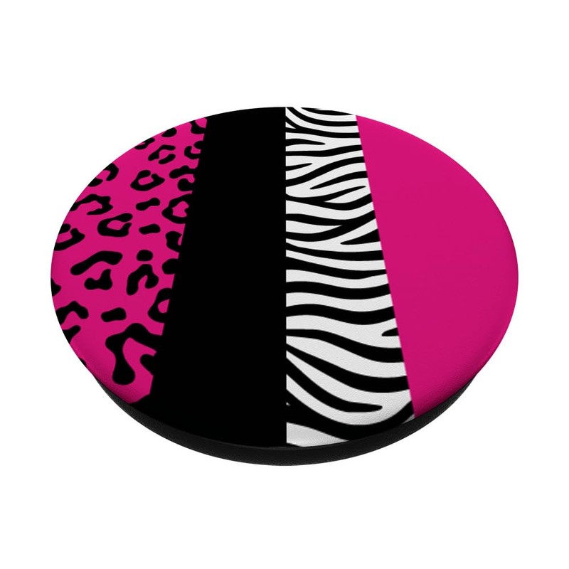 Hot Pink and Black Half Zebra and Half Leopard Print PopSockets Standard PopGrip