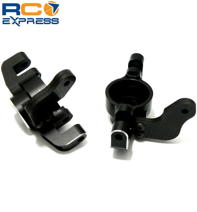 - CNC machined 6061-T6 aluminum construction - Black anodizing for durability, corrosion resistance, and great looks - 6mm (two 3mm placed back-to-back) thick replaceable carbon fiber steering arms - Replaces the factory plastic components - Secondarily-processed machined beveled edges - Clearly marked "R" and "L" steering knuckle labels - High strength steel hardware