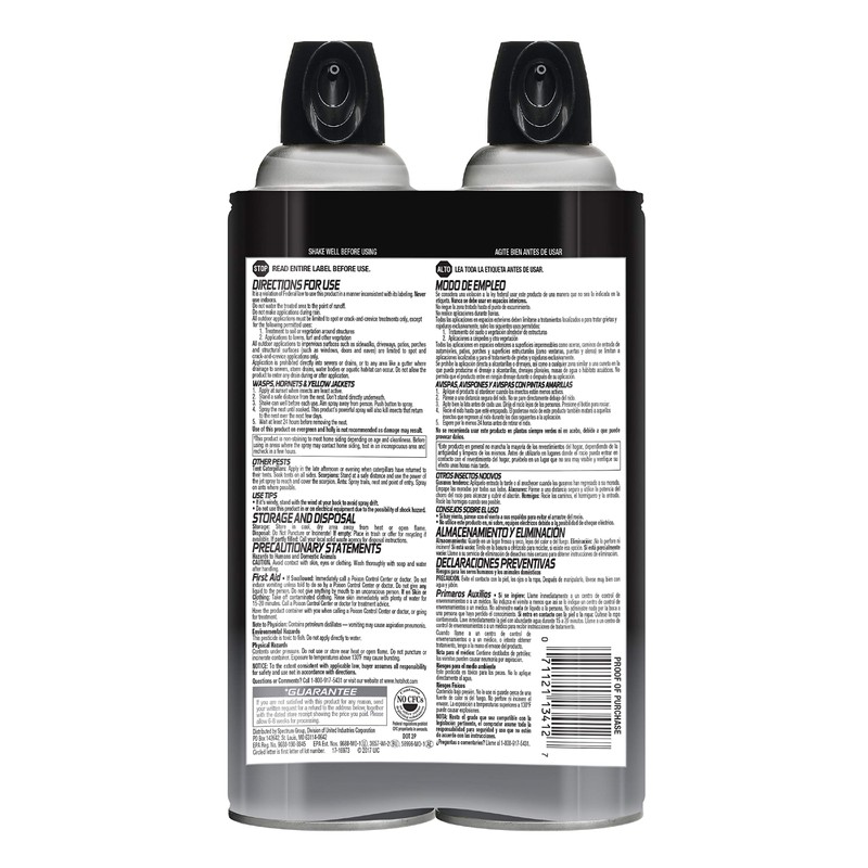 Hot Shot Wasp & Hornet Killer3 (Aerosol) kills on contact and eliminates the nest. It also kills yellow jackets, tent caterpillars and scorpions. It has up to a 27 ft jet spray. The water-based formula is non-staining.