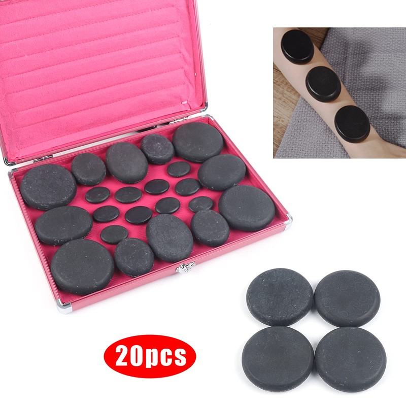 Hot Stones Massage Set, 20 Pcs Basalt Hot Stones Kit with Heater Box Basalt Stone Rock SPA Oiled Massager + Warmer Box