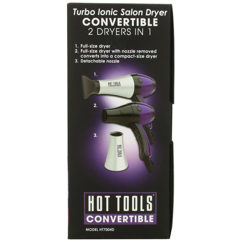- Detachable nozzle transforms full-size dryer into a compact dryer