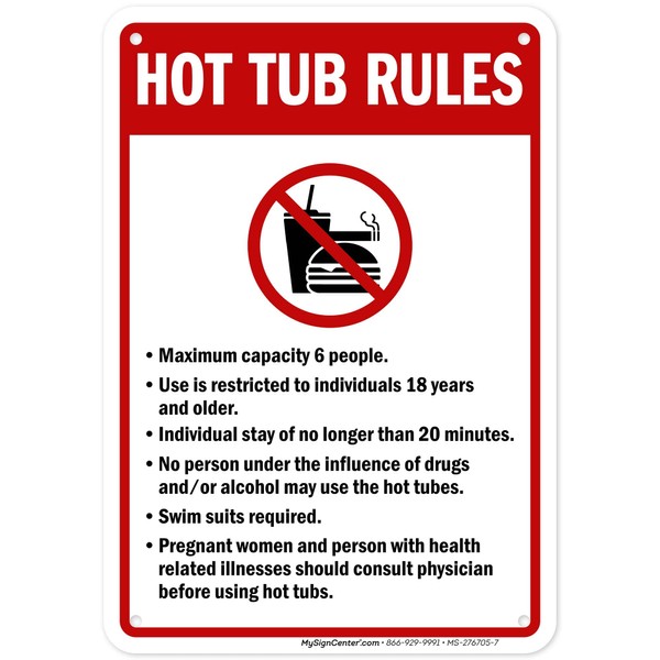 Hot Tub Rules Maximum Capacity 6 People Use Is Restricted Sign, 10x7 Inches, Rust Free .040 Aluminum, Fade Resistant, Made in USA by My Sign Center