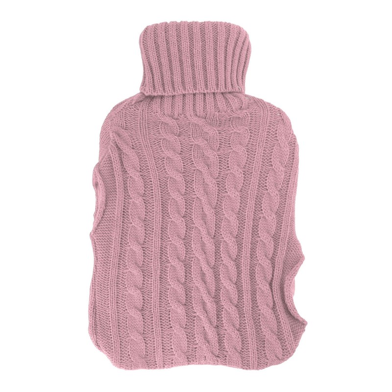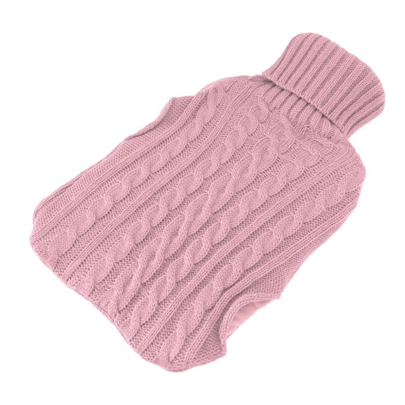 Hot Water Bag Rubber Explosionproof Water Injected Hand Warming Bag with Twist Knit Hand Insert Cover Large Pink