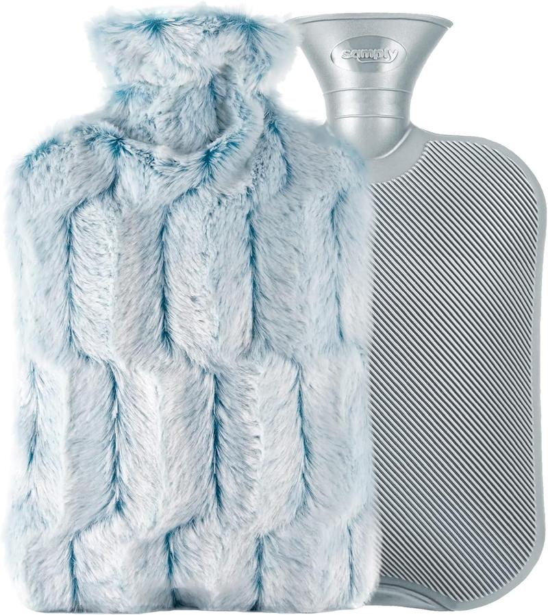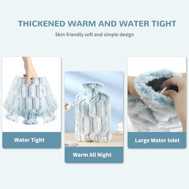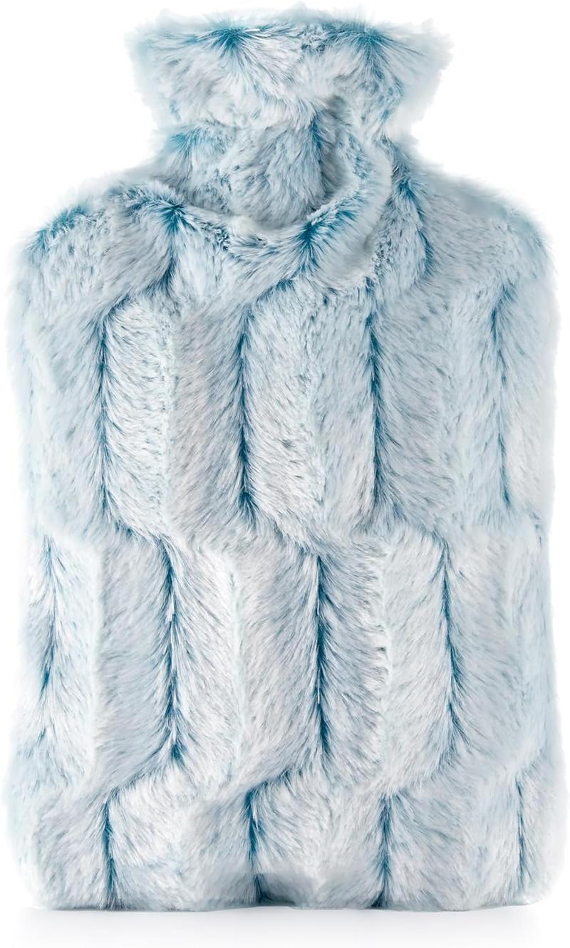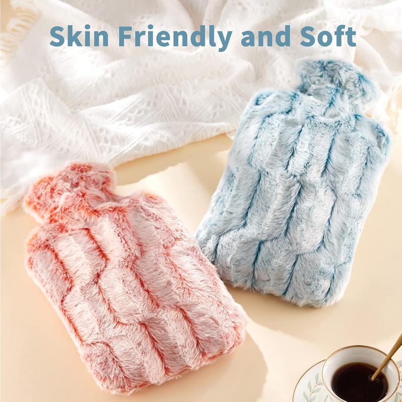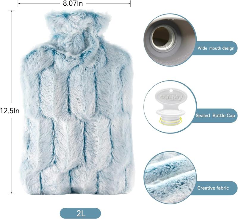 Hot Water Bottle - 2L Hot Water Bag with Furry Cover, Light Green - Color: Orange